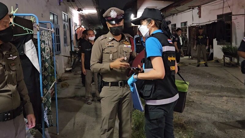 ในที่เกิดเหตุเป็นห้องแถว แบ่งให้เช่า 20 ห้อง ซึ่งมีแรงงานต่างด้าว (พม่าและลาว) เช่าพักอาศัยอยู่ ส่วนห้องที่เกิดเหตุเป็นห้องเช่า พบร่างผู้เสียชีวิตสวมกางเกงขาสั้นสีแดง เสื้อเชิ้ตสีดำลายน้ำเงิน
