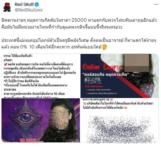 จากกรณี อาจารย์ท่านหนึ่ง เปิดคอร์สพิเศษผู้ที่เข้าเรียนสามารถจบมาเป็นอรหันต์ได้ โดย Red Skull ระบุว่า นิพพานง่ายๆ หยุดการเกิดดับในราคา 25,000 บาท คือไม่มีหน่วยงานไหนที่กำกับดูแลพวกแบบนี้จริง ๆ เหรอ ประเทศนี้แม่งแค่อุปโลกน์ตัวเป็นครูมีพลังวิเศษ ตั้งตนเป็นอาจารย์ หากินได้ง่าย ๆ แล้ว ผ่อน 0% 10 เดือนได้อีก อรหันต์แบบใด