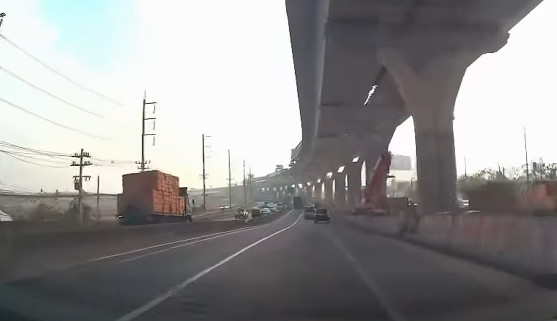เปิดภาพนาที เครนก่อสร้าง ทางยกระดับถนนพระราม 2 ถล่มทับรถ เสียชีวิตแล้ว 2 ราย