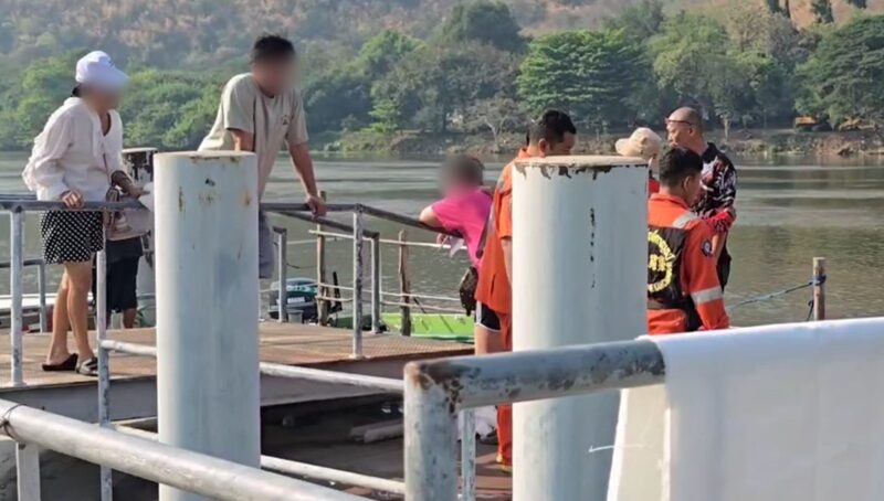 กระทั่งช่วงสายวันที่ 23 ก.พ.2569 เจ้าหน้าที่ตำรวจ สภ.เมืองกาญจนบุรี และอาสาสมัครมูลนิธิพิทักษ์กาญจน์ รับแจ้งเหตุพบศพหญิงสาวลอยมาติดอยู่บริเวณด้านข้างจวนผู้ว่าราชการจังหวัดกาญจนบุรี จึงรีบนำกำลังไปตรวจสอบ