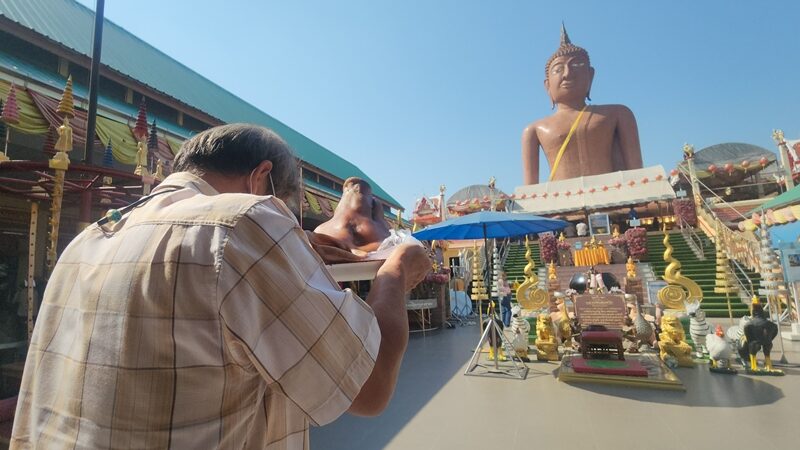 ผู้รับเหมาก่อสร้าง ยกหัวหมูแก้บน หลวงพ่อสมหวัง แห่ส่องเลขเด็ด