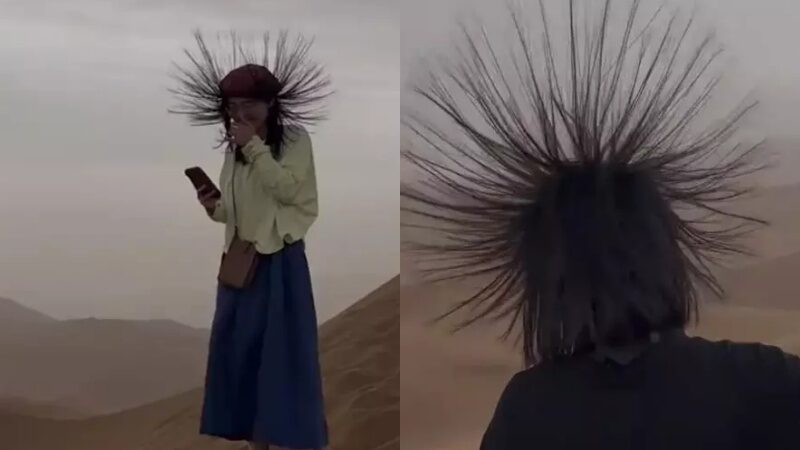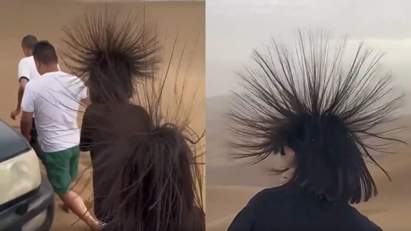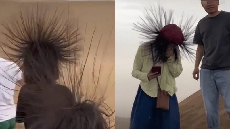 กระแสไวรัลในโลกออนไลน์กำลังถกเถียงกันสนั่นถึงเหตุการณ์ที่นักเที่ยวได้รับประสบการณ์ไม่ธรรมดาขณะขับรถมาเที่ยวกันกลางทะเลทรายในเมืองทูร์พาน เขตปกครองตนเองซินเจียงอุยกูร์ ประเทศจีน ซึ่งผมของนักท่องเที่ยวหญิงต่างอาการผมชี้ตั้งพร้อมกันขณะอยู่ในพื้นที่โล่งแจ้ง ทันใดนั้น นักท่องเที่ยวต่างรีบอพยพออกไป