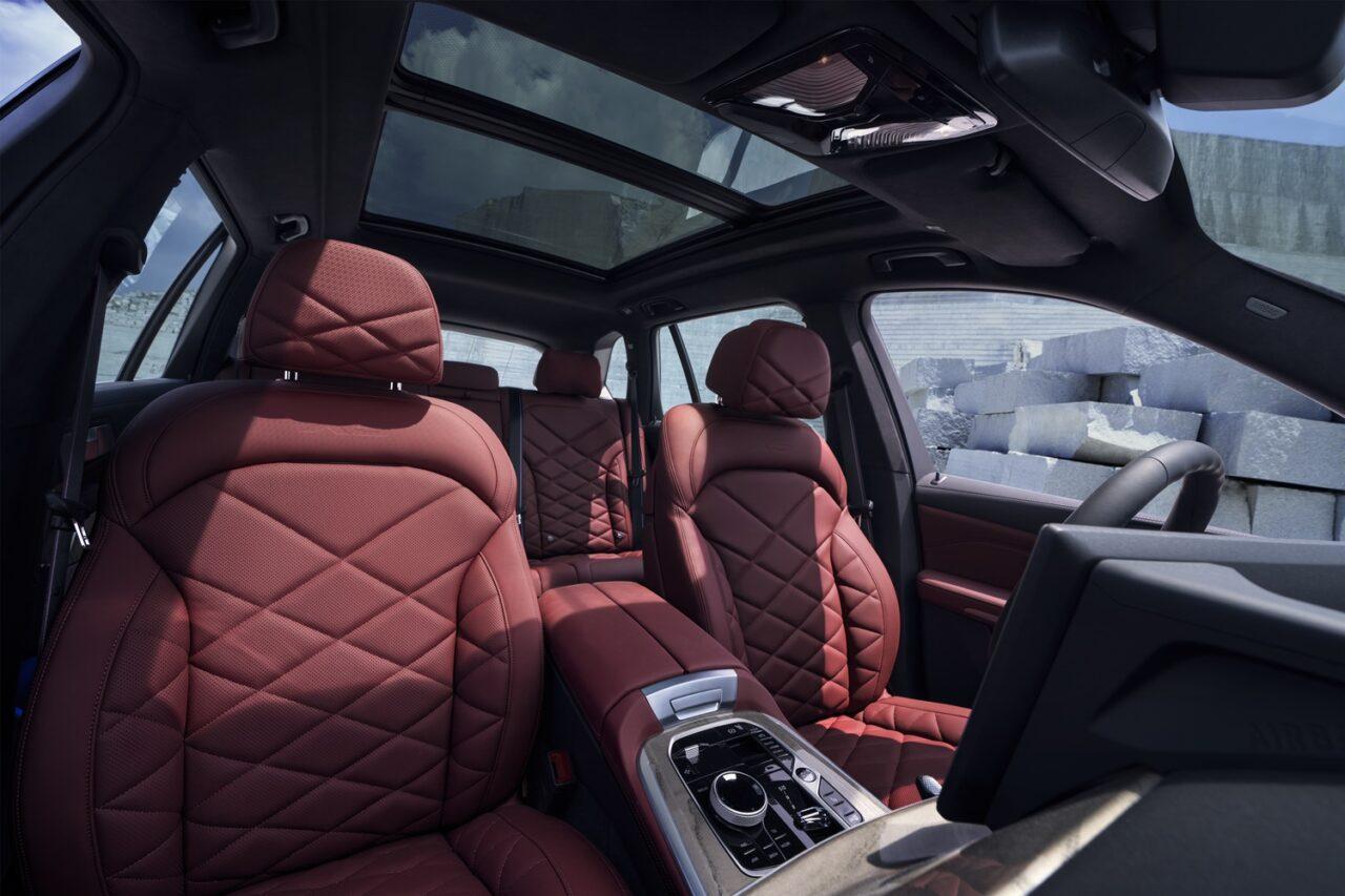 พร้อมไฟสีสร้างบรรยากาศภายในห้องโดยสาร Ambient Light ถัดจากช่องแอร์คอนโซลกลาง พร้อมเบาะนั่งหนังแท้ใหม่ หลังคาแบบ Panorama glass roof Sky Lounge เพิ่มความโปร่งอย่างโอ่อ่าเหนือระดับ ระบบปรับอากาศอัตโนมัติแบบ 4 โซน เบาะหลังพับได้แบบ 40:20:40 ประตูท้ายที่สามารถแยกเปิดสองส่วนเพื่อให้สะดวกต่อการขนย้ายสัมภาระเปิดปิดอัตโนมัติด้วยระบบไฟฟ้า