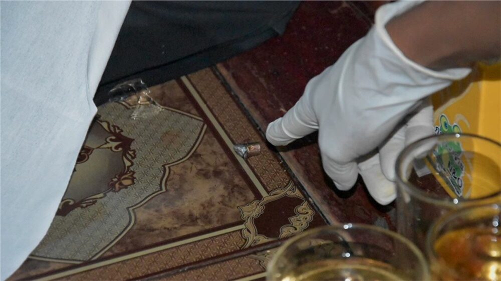 ใกล้กันพบ ร.ต.อ.จันทร์ ประดิษฐ์ อายุ 64 ปี อดีตตำรวจสังกัด ตชด.326 อ.เชียงคำ ชาว อ.เชียงคำ จ.พะเยา ผู้ก่อเหตุ ถูกควบคุมตัวไว้ โดยกลุ่มพลเมืองดีที่มาใช้บริการการในร้าน และอาวุธปืนลูกโม่ ขนาด .357 ทะเบียน พย4/8137 หมายเลขประจำปืน BHP 5986 จำนวน 1 กระบอก ของผู้ก่อเหตุ มอบให้เจ้าของร้านเก็บรักษาไว้ ตรวจสอบภายในรังเพลิงพบลูกกระสุนปืน ขนาด .357 จำนวน 2 นัด ปลอกกระสุนปืน ขนาด .357 จำนวน 4 นัด รวม 6 นัด