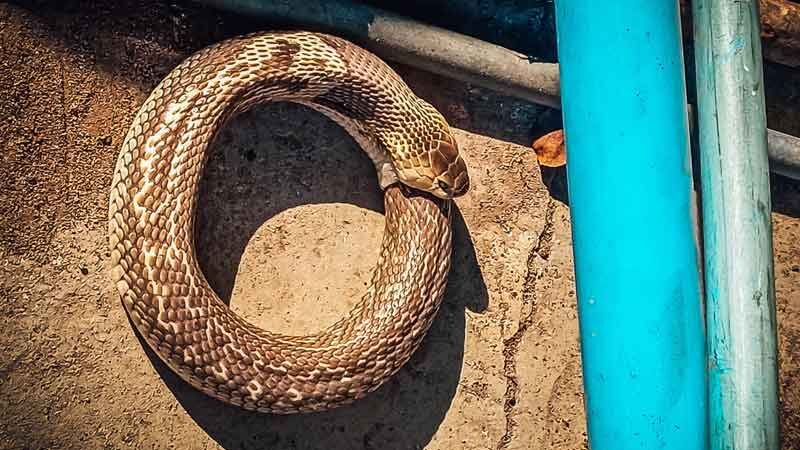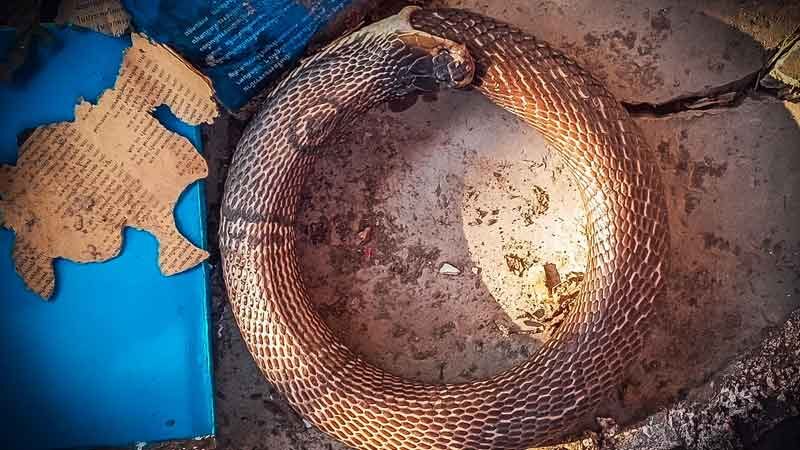 ฮือฮา พระกำลังทำความสะอาดวัด เจอซากงูกินหาง 2 ตัว ไม่เน่าทั้งคู่ พบเป็นงูเห่าเผือก