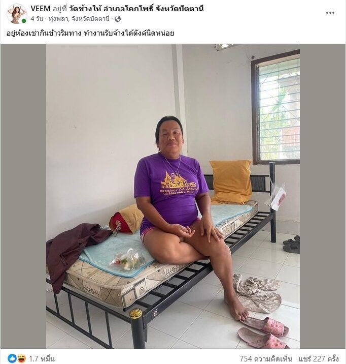 จากกรณี เพจ VEEM โพสต์ภาพ แม่หญิงลี พระมหาเทวีเจ้าแห่งเมืองทิพย์ ที่เคยโด่งดังในโลกออนไลน์ หลังจากเมืองทิพย์แตกแยกทางกับ ‘อีทิพย์’ โดยเผยภาพ แม่หญิงลี พร้อมแคปชั่นว่า “อยู่ห้องเช่ากินข้าวริมทาง ทำงานรับจ้างได้ตังค์นิดหน่อย” พร้อมระบุอยู่ที่ วัดช้างให้ อำเภอโคกโพธิ์ จังหวัดปัตตานี