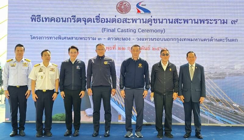 สำหรับความคืบหน้าโครงการก่อสร้างทางพิเศษสายพระราม 3 - ดาวคะนอง - วงแหวนรอบนอกกรุงเทพมหานครด้านตะวันตก ภาพรวม ณ สิ้นเดือนมกราคม 2566 มีความก้าวหน้าประมาณ 46.21% เร็วกว่าแผนงาน 5.56% (แผนงาน 40.65%) โดยพิธีเทคอนกรีตจุดเชื่อมต่อสะพานคู่ขนานสะพานพระราม 9 (Final Casting Ceremony) ครั้งนี้ จะทำให้โครงสร้างของสะพานขึงเชื่อมกัน 100% พิธีดังกล่าวเป็นส่วนหนึ่งของสัญญาที่ 4 ในโครงการทางพิเศษสายพระราม 3 - ดาวคะนอง - วงแหวนรอบนอกกรุงเทพมหานครด้านตะวันตก ปัจจุบันการก่อสร้างสัญญาที่ 4 มีความก้าวหน้าแล้วกว่า 98.23%