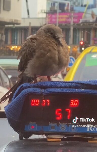 โดยเป็นคลิปที่ถ่ายภายในรถแท็กซี่คันหนึ่ง ในรถนั้นพบนกเขา 2 ตัว เกาะอยู่ตรงมิเตอร์ ซึ่งถ้าหากสังเกต จะเห็นมีขอนไม้เล็กวางอยู่บริเวณนั้นด้วย ด้านคนขับรถแท็กซี่ก็ขับไปเรื่อย ๆ นกเขาก็เดิน บินอยู่บริเวณคอนโซลรถ