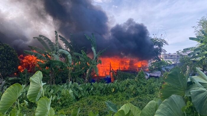 ได้ยินเสียงระเบิดดัง 2 ครั้ง ไฟไหม้ชุมชนบ้านไม้เก่า เผาบ้านวอด 8 หลัง