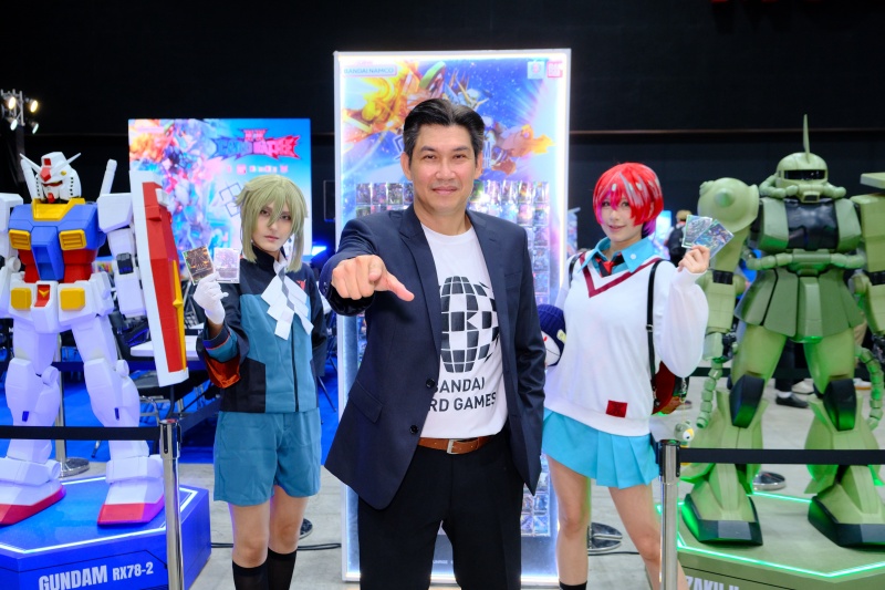 “GUNDAM CARD GAME เป็นการเชื่อมโยงผลิตภัณฑ์ที่ประสบความสำเร็จสูงของแบรนด์ BANDAI ทั้ง “Card Game” และ “Gunpla” เข้าด้วยกัน ซึ่งมาพร้อมจุดเด่นที่สามารถรองรับผู้เล่นหลายคน (Multiplayer) และโหมดการเล่นที่หลากหลาย โดยจะเริ่มวางจำหน่ายในประเทศไทยตั้งแต่วันที่ 12 กรกฎาคมนี้ เริ่มจากชุดสตาร์ทเตอร์เริ่มต้น และชุดบูสเตอร์หลักแบบกล่องในระยะถัดไป โดยจะมี Gunpla หรือ กันดั้มพลาสติกโมเดล อยู่ในสินค้าบางซีรีส์อีกด้วย สามารถหาซื้อผ่านร้านจำหน่ายการ์ดเกมพันธมิตรไม่น้อยกว่า 100 ร้าน และเครือข่ายร้านหนังสือชั้นนำอีกกว่า 200 ร้าน ควบคู่ไปกับการจัดกิจกรรมส่งเสริมการขาย การตลาดดิจิทัล,โซเชียลมีเดีย,KOLs และ Influencers รวมถึงการสร้างเครือข่ายผู้เล่นที่เข้มแข็งด้วยการจัดการแข่งขันอย่างต่อเนื่อง และการแข่งขันระดับ Championship ไปถึงระดับ World Championship ในช่วงต้นปี 2569 ซึ่งคาดว่า GUNDAM CARD GAME จะได้รับความนิยมในระดับใกล้เคียงกับ One Piece Card Game ที่เปิดตัวไปก่อนหน้านี้ และจะสามารถสร้างยอดขายได้ไม่น้อยกว่า 2 แสนซอง และมีฐานผู้เล่นที่ร่วมแข่งขันไม่น้อยกว่า 1,000 คนในปีแรก” นายวีระศักดิ์ กล่าว