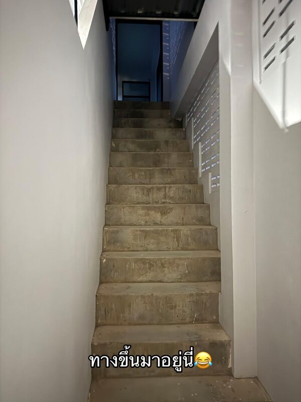 จากนั้นก็โพสต์ภาพห้องที่ชั้น 3 และบรรยายว่า ตอนมาดูเราก็งง เพราะเดินออกไปตรงระเบียงก็ไม่เห็นมีบันได ถามคนเปิดก็ไม่รู้เรื่องอะไร ก่อนจะตัดสินใจซื้อเราเข้ามาดูใหม่อีกรอบ เดินวน เดินสำรวจ