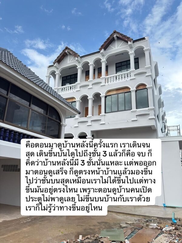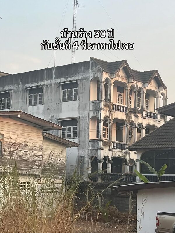 และเธอเล่าว่า บ้านร้าง 30 ปี กับชั้นที่ 4 ที่เราหาไม่เจอ คือตอนมาดูบ้านหลังนี้ครั้งแรก เราเดินจนสุด เดินขึ้นบันไดถึงชั้น 3 แล้วก็คือจบ ก็คิดว่าบ้านหลังนี้มี 3 ชั้นนั่นแหละ