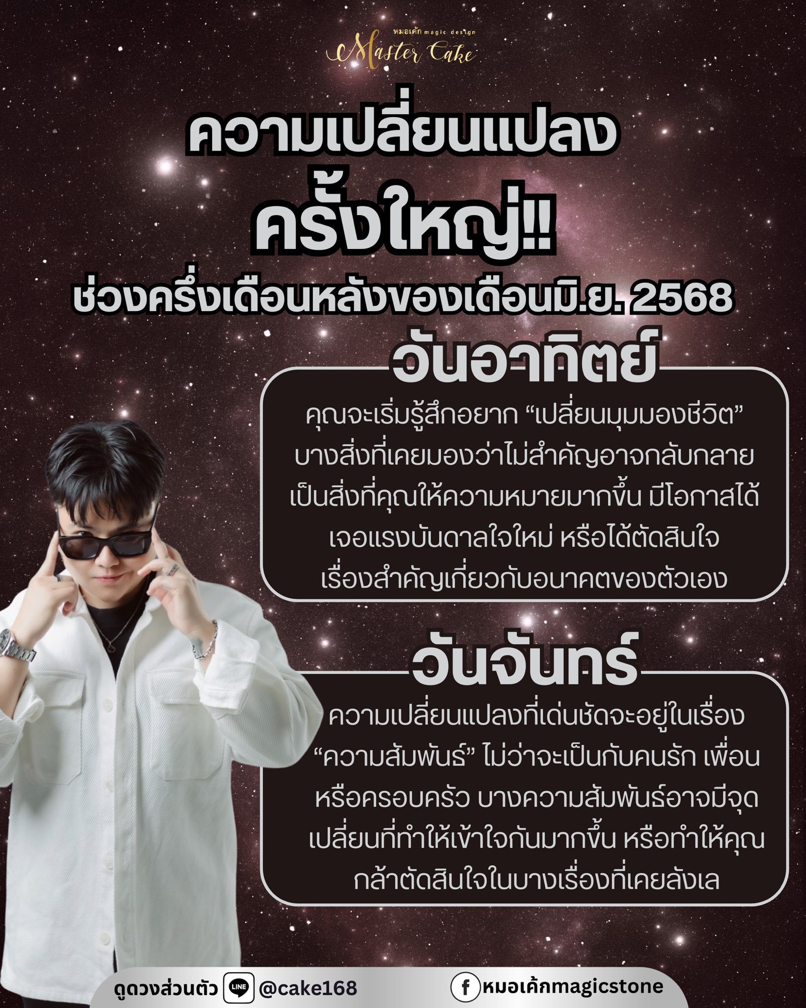 หมอเค้กMagic stone เผยถึงดวงชะตาที่จะมีความเปลี่ยนแปลงครั้งใหญ่ ช่วงครึ่งเดือนหลังของเดือนมิ.ย.2568 ทั้งเปลี่ยนมุมมองชีวิต บางสิ่งที่เคยมองว่าไม่สำคัญอาจกลับกลายเป็นสิ่งที่คุณให้ความหมายมากขึ้น มีโอกาสได้เจอแรงบันดาลใจใหม่ หรือได้ตัดสินใจเรื่องสำคัญเกี่ยวกับอนาคตของตัวเอง
