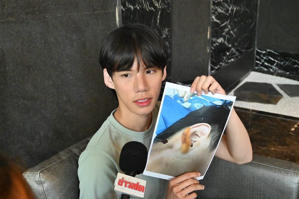 โดยเกิดเหตุตนเองตัดผมเป็นคนแรก ในขณะที่กำลังตัดผมบริเวณท้ายทอย ก็เกิดเหตุการณ์ดังกล่าว ซึ่งทำให้เนื้อหูเปิด เกือบขาด วินาทีนั้นตนเองรู้สึกเจ็บมาก จี๊ดไปถึงหัวใจ และทางช่างก็ขอโทษ ก่อนที่เพื่อนเพื่อนนักแสดงจะพาตนเอง ส่งโรงพยาบาลสุขุมวิท โดยเย็บแผล 7 เข็ม ซึ่งเรื่องนี้ต้องขอขอบคุณอาจารย์หมอจริงๆ