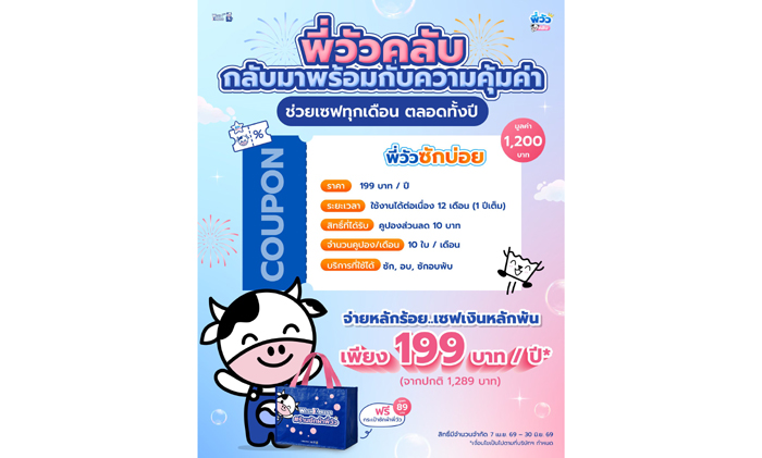 คุณอุไรวรรณ อ่อนเจริญ ประธานเจ้าหน้าที่บริหารฝ่ายประสบการณ์ลูกค้า กล่าวว่า บริษัทฯ ให้ความสำคัญกับการส่งมอบประสบการณ์การใช้บริการที่ดีให้กับลูกค้าทุกราย โดยกำลังดำเนินการ “ติดแอร์” ภายในร้านให้ครอบคลุม 100 สาขา เพื่อเพิ่มความสะดวกสบายให้แก่ลูกค้า โดยเฉพาะในช่วงเวลากลางวัน พร้อมช่วยลดผลกระทบจากฝุ่น PM 2.5 นอกจากนี้ บริษัทฯ ยังคงมุ่งเน้นการยกระดับมาตรฐานการให้บริการ เพื่อมอบความสะดวกสบาย ในระดับมืออาชีพ ให้กับลูกค้า ด้วยบริการซัก อบ พับ บริการรับรีดผ้า และ บริการ Delivery ส่งผ้าที่ซักอบพับแล้วถึงบ้านและสถานประกอบการของลูกค้า โดยมีคุณภาพการให้บริการที่สม่ำเสมอในทุกสาขา ควบคู่กับการพัฒนาระบบเดลิเวอรี่เพื่อตอบโจทย์ความต้องการของลูกค้าที่หลากหลาย ปัจจุบัน พี่วัวคลับมีสมาชิกจำนวนกว่า 14,000 User และบริษัทฯ ตั้งเป้าขยายฐานสมาชิกให้เติบโตอย่างต่อเนื่องภายในปีนี้