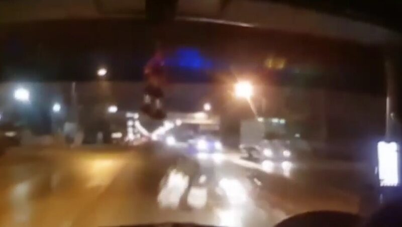 ภาพจากกล้องหน้ารถจับภาพนาทีชีวิตรถจักรยานยนต์ที่ขับขี่มาฝั่งตรงข้ามก่อนจะเสียหลักข้ามเกาะกลางไถลมาพุ่งชนกับรถกระบะคันที่มีกล้องทำให้ได้รับบาดเจ็บสาหัส 1 ราย และเสียชีวิตในที่เกิดเหตุ 1 ราย