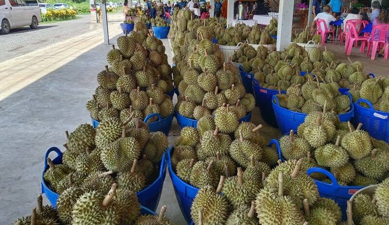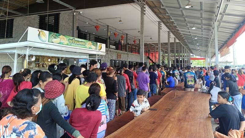แผงทุเรียนระยองใจดี ขนทุเรียนหมอนทองกว่า 2 ตัน ขายลูกละ 50 บาท คนครึ่งพันแห่ซื้อกันแน่นร้าน หมดเกลี้ยงภายใน30นาที