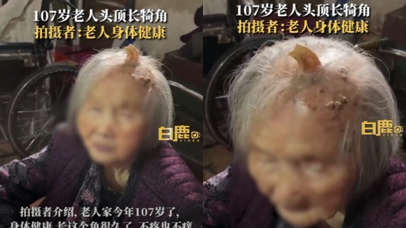 ตามรายงานของ Ctwant หญิงชราวัย 107 ปีในมณฑลกวางตุ้ง ประเทศจีน เกิดเขางอกบนศีรษะมานานหลายปี แต่ก็ไม่เจ็บ ไม่คัน และไม่ได้รบกวนการใช้ชีวิตแต่อย่างใด ดังนั้น หลังจากวิดีโอถูกเปิดเผย ชาวเน็ตจึงทำให้เกิดการถกเถียงกันอย่างเผ็ดร้อนในหมู่ชาวเน็ตจนได้รับยกย่องให้เป็น "สัญลักษณ์แห่งการมีอายุยืนยาว"