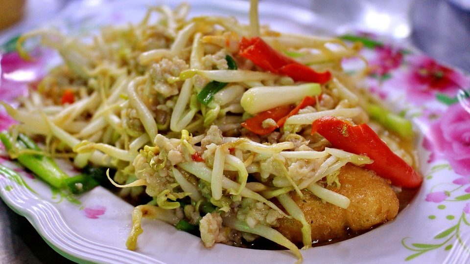ผัดถั่วงอก เมนูนี้มีความมงคลตามชื่อของผักคือ "ถั่วงอก" เพราะให้ความหมายในเรื่องของความเจริญงอกงาม ความก้าวหน้า ทั้งในหน้าที่การงานและด้านการค้าขาย นอกจากนี้ยังเป็นวัตถุดิบที่หาง่ายและราคาไม่แพง หากใครยังไม่มีเมนูต้อนรับปีใหม่ ขอแนะนำเมนูผัดถั่วงอกให้เป็นอีกหนึ่งตัวเลือก