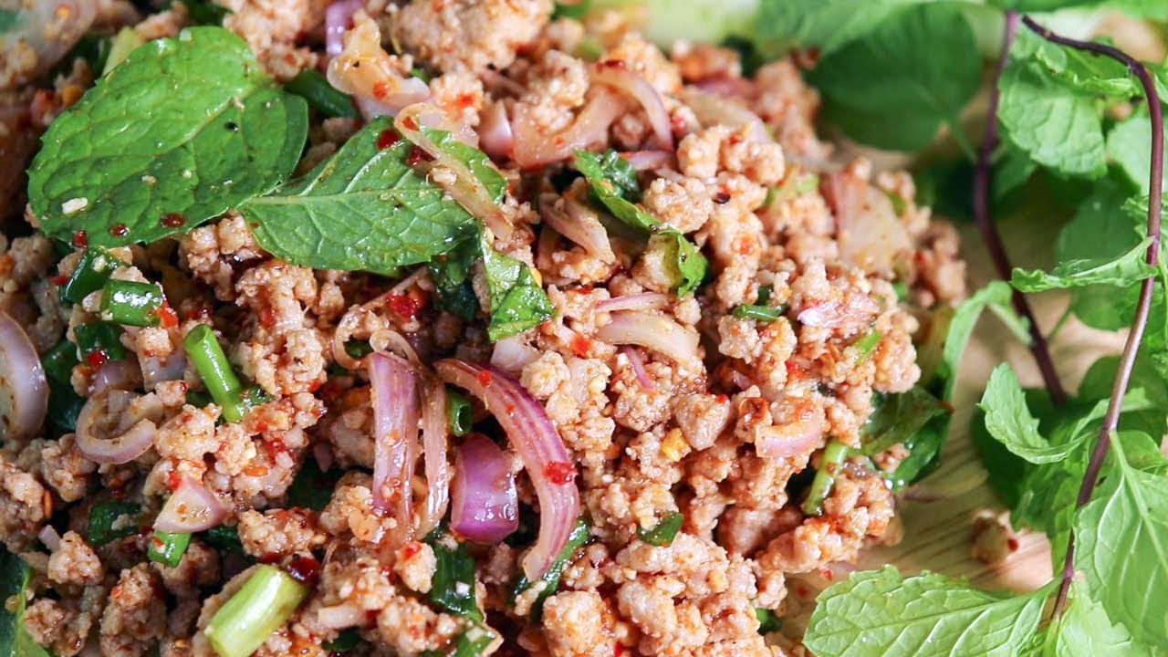 ลาบ แน่นอนว่าเป็นอีกเมนูที่แนะนำ เพราะ "ลาบ" พ้องเสียงกับคำว่า "ลาภ" ที่มีความหมายเป็นสิริมงคลของคนไทย หากใครรับประทานในวันปีใหม่ จะนำพาลาภมาให้ ทั้งโชคลาภและลาภยศ เรียกได้ว่ารับไปเต็มๆเลยทีเดียว