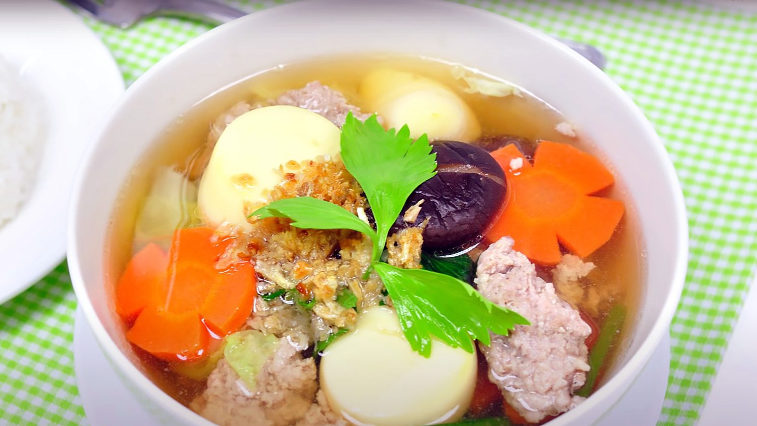 แกงจืด เพราะคนโบราณเชื่อว่า การทานน้ำแกงร้อนๆ รสชาติจืดๆ ทานแล้วลื่นคอ จะทำให้ชีวิตราบรื่น ไม่มีอุปสรรค และยิ่งเป็นแกงจืดเต้าหู้สาหร่าย ยิ่งเพิ่มความหมายดีๆไปอีกเท่า เพราะสาหร่ายมีความหมายในเรื่องของความร่ำรวย ส่วนเต้าหูมีความหมายในเรื่องความสุข