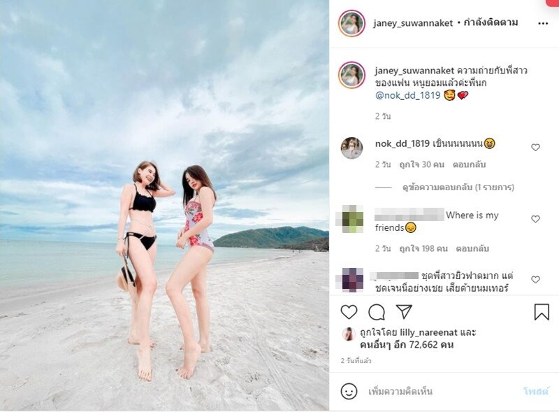 สาวเจนนี่ยังได้โพสต์ภาพสวยแซ่บคู่กับพี่สาวของแฟนหนุ่ม พร้อมแคปชั่นว่า ความถ่ายกับพี่สาวของแฟน หนูยอมแล้วค่ะพี่นก ขณะที่พี่สาวของแฟนหนุ่มก็คอมเมนต์ตอบด้วยว่า เขินนนนนนน