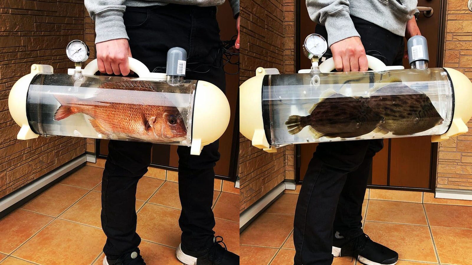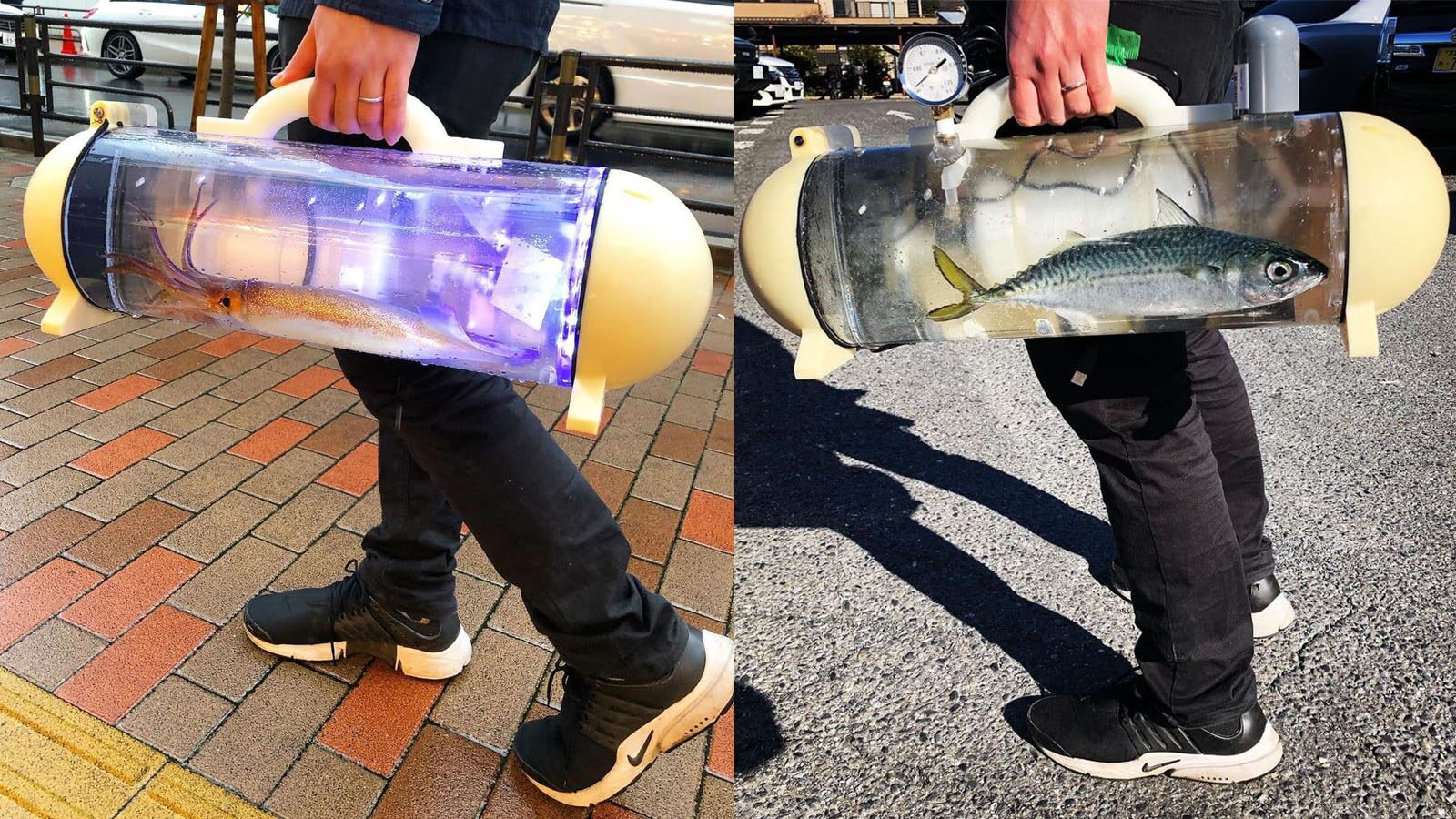 หนุ่มญี่ปุ่นไอเดียเจ๋ง ออกแบบกระเป๋า ไว้ใส่ปลาตัวเป็นๆ ราวตู้ปลาเคลื่อนที่!