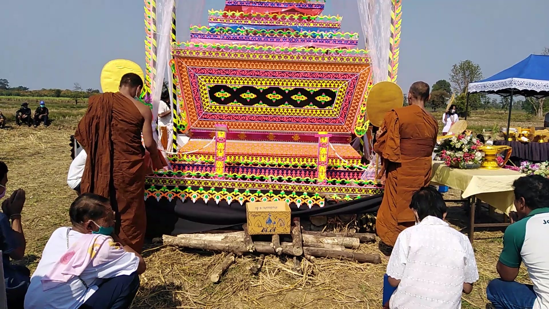 วันที่ 24 ม.ค. ผู้สื่อข่าวรายงานว่า ที่บริเวณทุ่งนาท้ายหมู่บ้านพรสุข ต.บัวเชด อ.บัวเชด ต.สุรินทร์ ได้มีชาวบ้านประมาณ 300 คน กำลังร่วมกันประกอบพิธีศพ มองดูผ่านๆ อาจเหมือนกับการประกอบพิธีศพธรรมดาๆ แต่สุดแปลกเมื่อทราบความจริงว่าที่อยู่ในโลงและชาวบ้านกำลังทำพิธีอยู่นั้น เป็นน้องหมา ชื่อเจ้าอ้วน อายุ 8 ปี ที่ได้ป่วยตาย ชาวบ้านจึงนิมนต์พระสงฆ์ 8 รูปมาทำพิธีฌาปนกิจเจ้าอ้วน