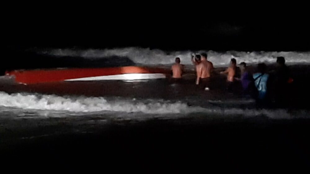 ประกอบกับมีคลื่นซัดเข้ามาอีก ทำให้น้ำเข้าตัวเรือจากด้านซ้ายของเรือ และเรือจมลงเหลือแต่ส่วนหัว ผู้โดยสารจึงออกจากเรือ ต่อมาเรือพลิกคว่ำและคลื่นซัดตัวเรือเข้าสู่บริเวณชายหาด ขณะนี้อยู่ระหว่างการค้นหาผู้สูญหาย
