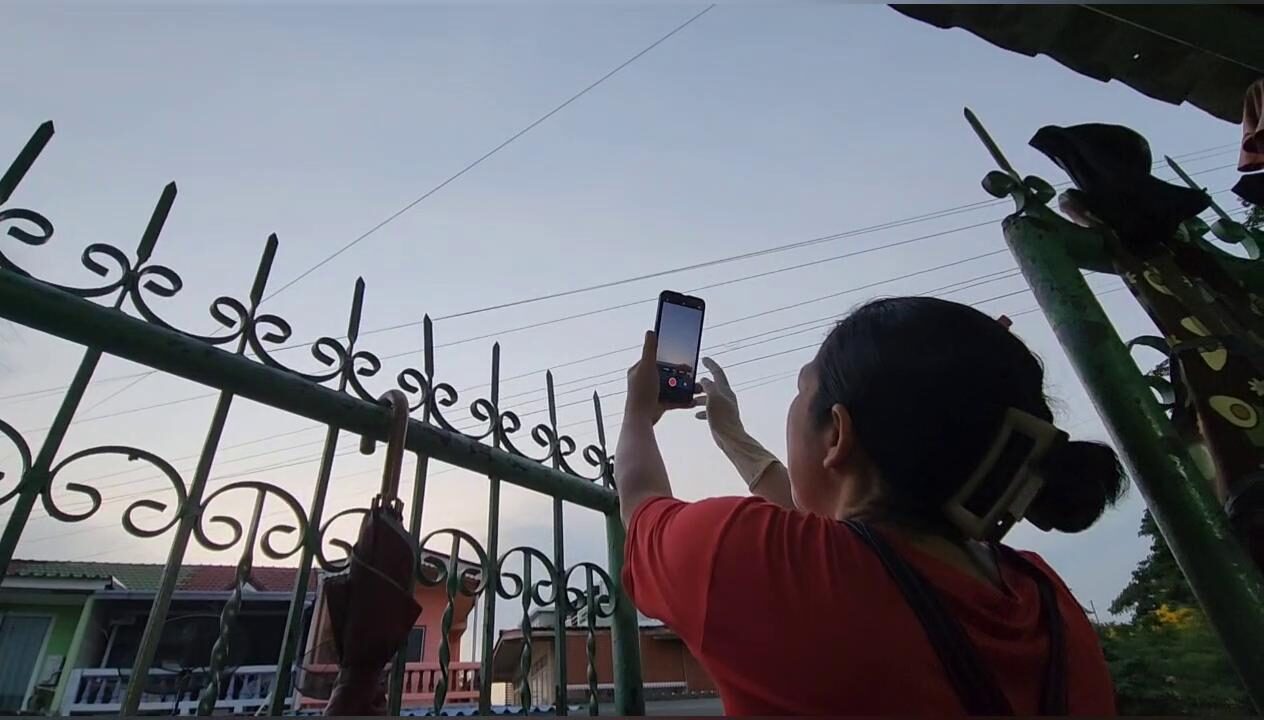 ผู้สื่อข่าวเดินทางไปพบกับ น.ส.พรทิพย์ หว่างวัด อายุ 51 ปี เจ้าของร้านเมี่ยงราชาปลาเผา ซึ่งกำลังเปิดคลิปแสงวูบวาบหลายดวงในมือถือให้ชาวบ้านในหมู่บ้านดู