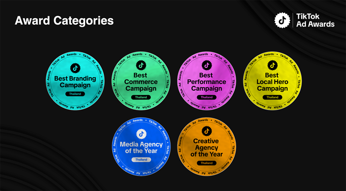 รางวัล TikTok Ad Awards ในประเทศไทยแบ่งออกเป็น 6 รางวัลดังนี้