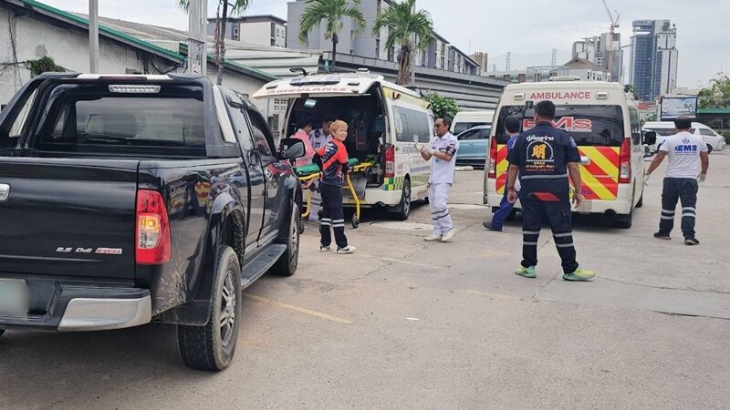 เจ้าหน้าที่กู้ภัยมูลนิธิสว่างบริบูรณ์ธรรมสถานเมืองพัทยา และเจ้าหน้าที่พยาบาลโรงพยาบาลพัทยาปัทมคุณ ทำการช่วยเหลือเบื้องต้นก่อนเคลื่อนย้ายส่งโรงพยาบาลพัทยาปัทมคุณให้การดูแลต่อ เบื้องต้นแม่เด็กและเด็กปลอดภัยดี