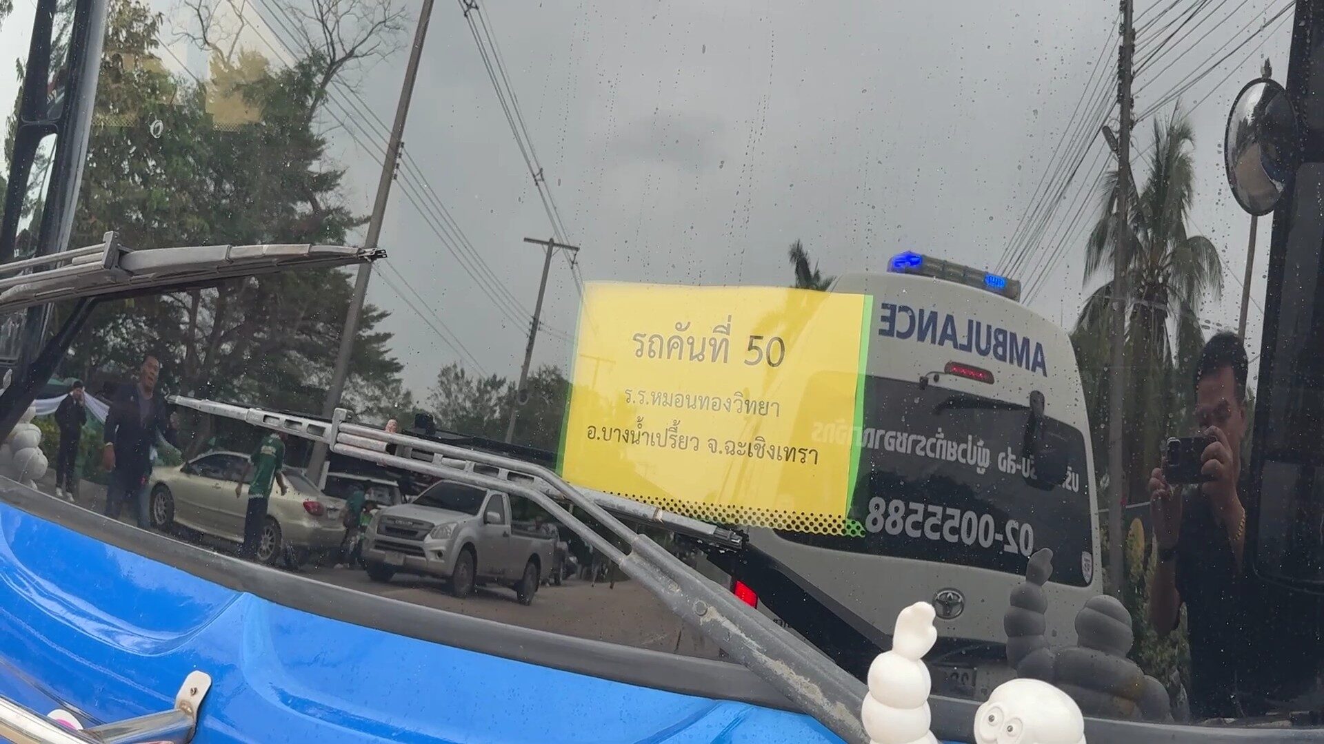 วันที่ 8 พ.ย.68 ที่หน้าโรงเรียนหมอนทองวิทยา ต.หมอนทอง อ.บางน้ำเปรี้ยว จ.ฉะเชิงเทรา มีประชาชนจากในพื้นที่และตำบลใกล้เคียง ต่างเดินทางมาขึ้นรถบัสที่จัดรอไว้บริเวณจุดนี้ 50 คัน