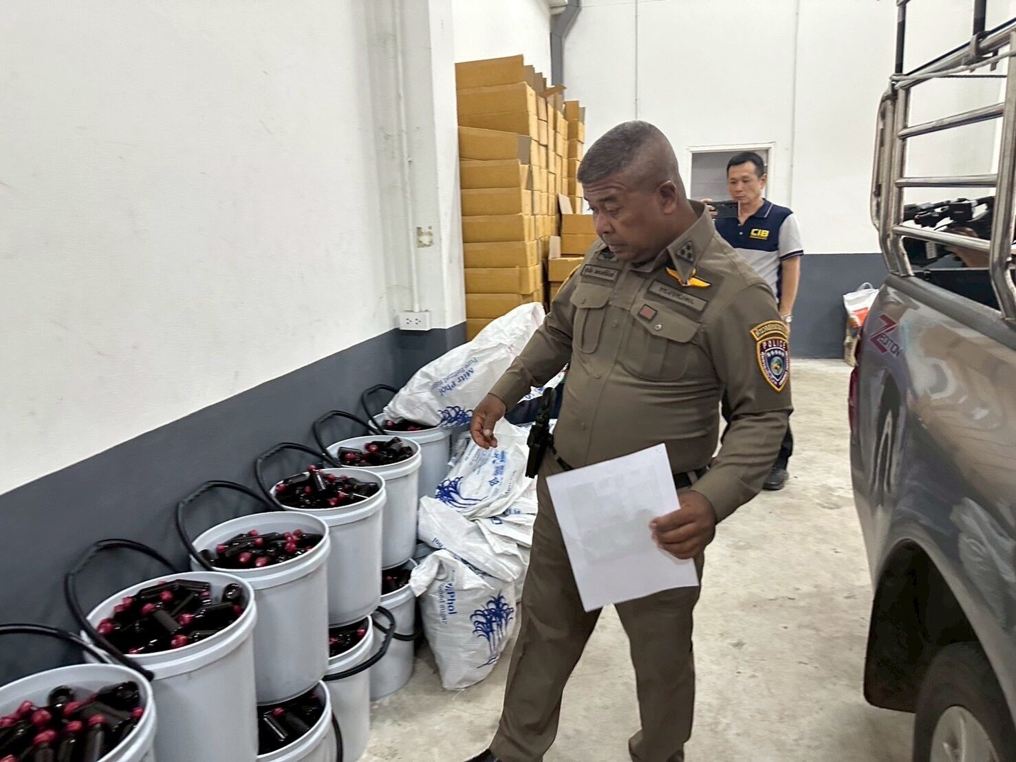 ทลายโรงงานยาแก้ไอปลอม ยึดของเก๊ 172,000 ขวด อึ้งเจออยู่ในถังพลาสติก รวบตัวแม่บงการใหญ่