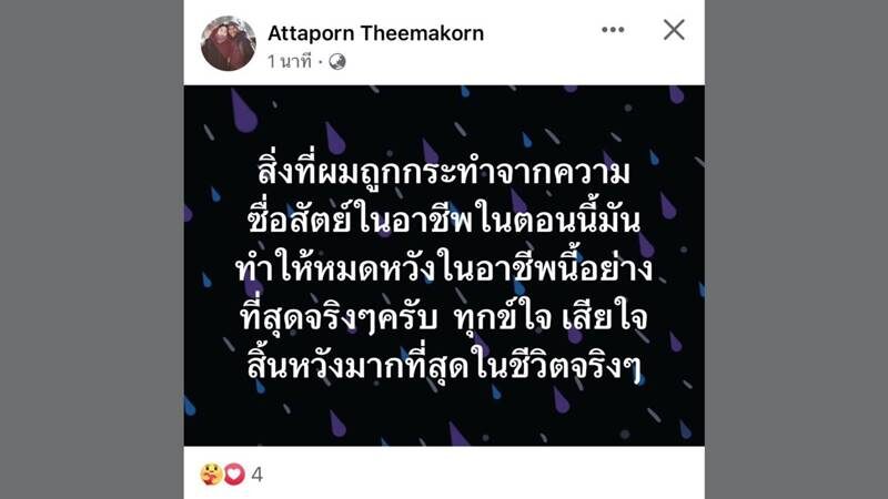 เกิดอะไรขึ้น! หนุ่ม อรรถพร โพสต์ตัดพ้อ สิ้นหวังกับชีวิต หลังถูกกระทำจากความซื่อสัตย์ในอาชีพ