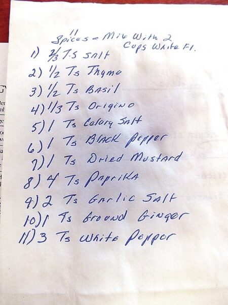 ทั้งนี้ รายชื่อของส่วนผสมถูกพบในสมุดบันทึกของ ‘คลอเดีย แซนเดอร์ส’ ภรรยาของ ผู้พันแซนเดอร์ ผู้ก่อตั้งร้านไก่ทอด KFC นั่นเอง ก่อนมันจะถูกตีพิมพ์ออกมา