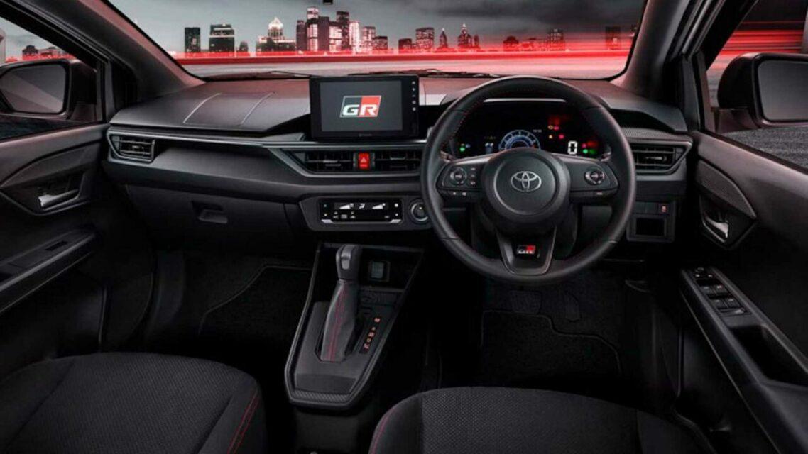 ออปชันภายในครบครันครบถ้วนทั้ง มาตรวัดดิจิทัลสีแบบ TFT 7 นิ้ว จอสัมผัสขนาดใหญ่ 8 นิ้ว เชื่อมต่อความบันเทิงหลากรูปแบบ พวงมาลัยมัลติฟังก์ชันสามก้านหุ้มหนัง เครื่องปรับอากาศแบบดิจิทัล กระจายความเย็นทั่วถึง ชาร์จมือถือไร้สาย และเบาะหลังพับเก็บได้แบบ 60/40 โดยมีพื้นที่ด้านหลังมากถึง 265 ลิตร พร้อมการตกแต่งสไตล์ Gazoo Racing ตั้งแต่เบาะผ้ากำมะหยี่สีดำ ปักโลโก้ GR เดินด้ายสีแดง พวงมาลัยมัลติฟังก์ชันสามก้านหุ้มหนังดำเดินด้ายแดงติดตรา GR ถุงเกียร์อัตโนมัติหุ้มหนังสังเคราะห์ดำเดินด้ายแดง และสคัพเพลตชายประตูติดตรา GR สีเงิน