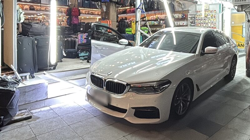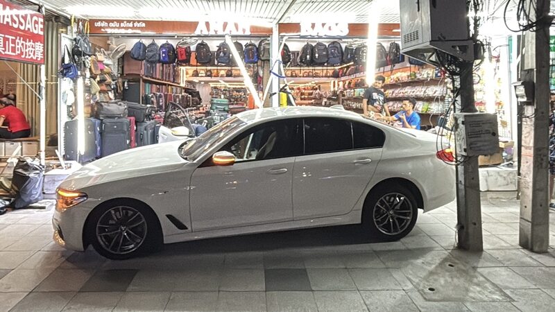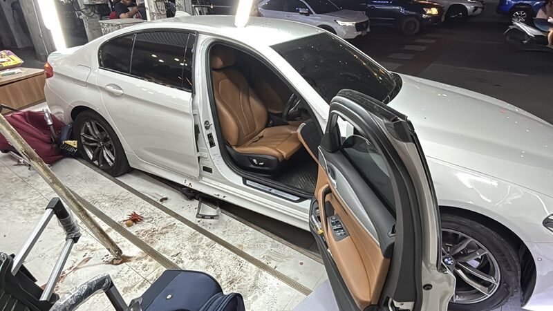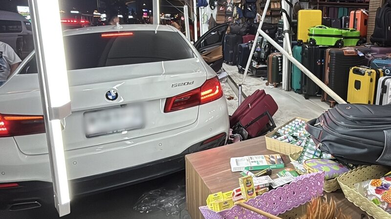 ที่เกิดเหตุพบประชาชนและนักท่องเที่ยวยืนมองดูเหตุการณ์จำนวนมาก และอยู่ในอาการตื่นตกใจ ตรวจสอบพบรถเก๋ง ยี่ห้อ BMW ซีรีย์ 5 (520D) สีขาว ทะเบียน กทม. สภาพด้านท้ายได้รับความเสียหาย ประตูฝั่งคนขับเปิดอ้า โดยบานประตูบิดพับมาติดกับขอบล้อหน้า อีกทั้งตัวรถจอดคาอยู่บนทางเดินฟุตปาธ ด้านท้ายรถยังพุ่งชนร้านขายกระเป๋าเดินทาง จนทำให้กระเป๋าที่วางอยู่หน้าร้านเสียหาย