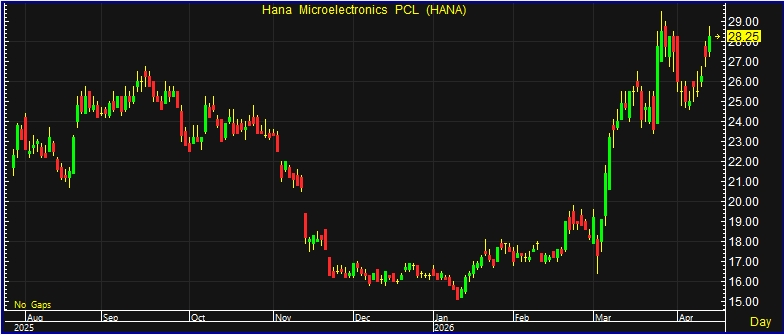 บล.ฟิลลิป (ประเทศไทย) ระบุในบทวิเคราะห์ว่า คาดว่าผลการดำเนินงานในไตรมาส 1/69 ของ HANA จะเริ่มเห็นการฟื้นตัวขึ้น เมื่อเทียบกับไตรมาส 4/68 ราว 13.2% จากรายได้ส่วนงานในโรงงานของ HANA ที่อยุธยาเริ่มกลับมาสูงขึ้น คู่ค้ามีสัญญาณเชิงบวกมากขึ้น ทำให้คาดว่าผลการดำเนินงานไตรมาส 4/68 จะเป็นไตรมาสที่มีจุดต่ำที่สุดได้ผ่านพ้นไปแล้ว