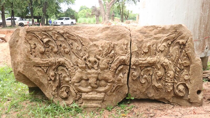 โคราชฮือฮาพบ ทับหลังพระอินทร์ทรงช้างเอราวัณ คายท่อนพวงมาลัย ศิลปะเขมรโบราณอายุพันปี เตรียมพัฒนาเป็นแหล่งท่องเที่ยวเชิงประวัติศาสตร์