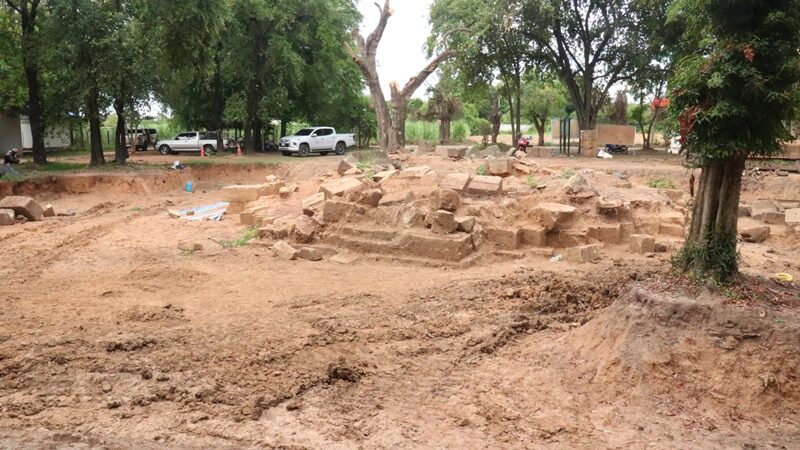 เมื่อเวลา 13.30 น. วันที่ 26 มิ.ย.66 นายรักชาติ กิริวัฒนศักดิ์ ประธานสภาองค์การบริหารส่วนจังหวัด (อบจ.) นครราชสีมา ลงพื้นที่ตรวจเยี่ยมความคืบหน้าการดำเนินโครงการขุดแต่งโบราณสถานปราสาทบ้านบุใหญ่ ตามสัญญาที่ 128/2566 พื้นที่หลังโรงเรียนบ้านบุใหญ่ หมู่ 7 ต.สูงเนิน อ.สูงเนิน จ.นครราชสีมา พบบานประตูทึบปราสาทด้านที่ 3 และทับหลังชิ้นที่ 4 พระอินทร์ทรงช้างเอราวัณ คายท่อนพวงมาลัย ร่องรอยการสลักมีความลึกและเด่นชัด แต่ยังไม่เสร็จสมบูรณ์ โดยขุดค้นพบบริเวณด้านทิศตะวันตกของปราสาท
