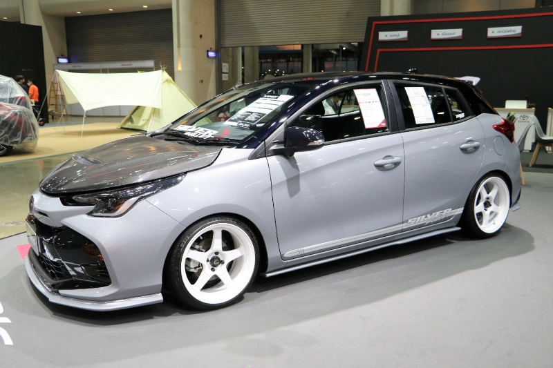 “YARIS ชุดแต่ง SILVER BULLET” ดึงดูดทุกสายตากับชุดแต่งที่มาในสไตล์ USDM ที่ดูเรียบง่าย เน้นไปที่การจัดทรงรถให้มีความสวยงาม สะอาดตา เหมาะกับการเป็นรถใช้งานในเมืองอย่างแท้จริง โดยชุดแต่งประกอบด้วย ฝากระโปรงหน้าคาร์บอน จาก Monza Shop สเกิร์ตรอบคัน สปอยเลอร์ ล้ออัลลอย Comis XT-005R ขนาด 17x7.5 +30 ยาง Cosmis Tire ขนาด 205/45R17 โช้คอัพ Silver Neomax R ท่อไอเสีย จาก BRD และคันเร่งไฟฟ้า จาก ECU=SHOP