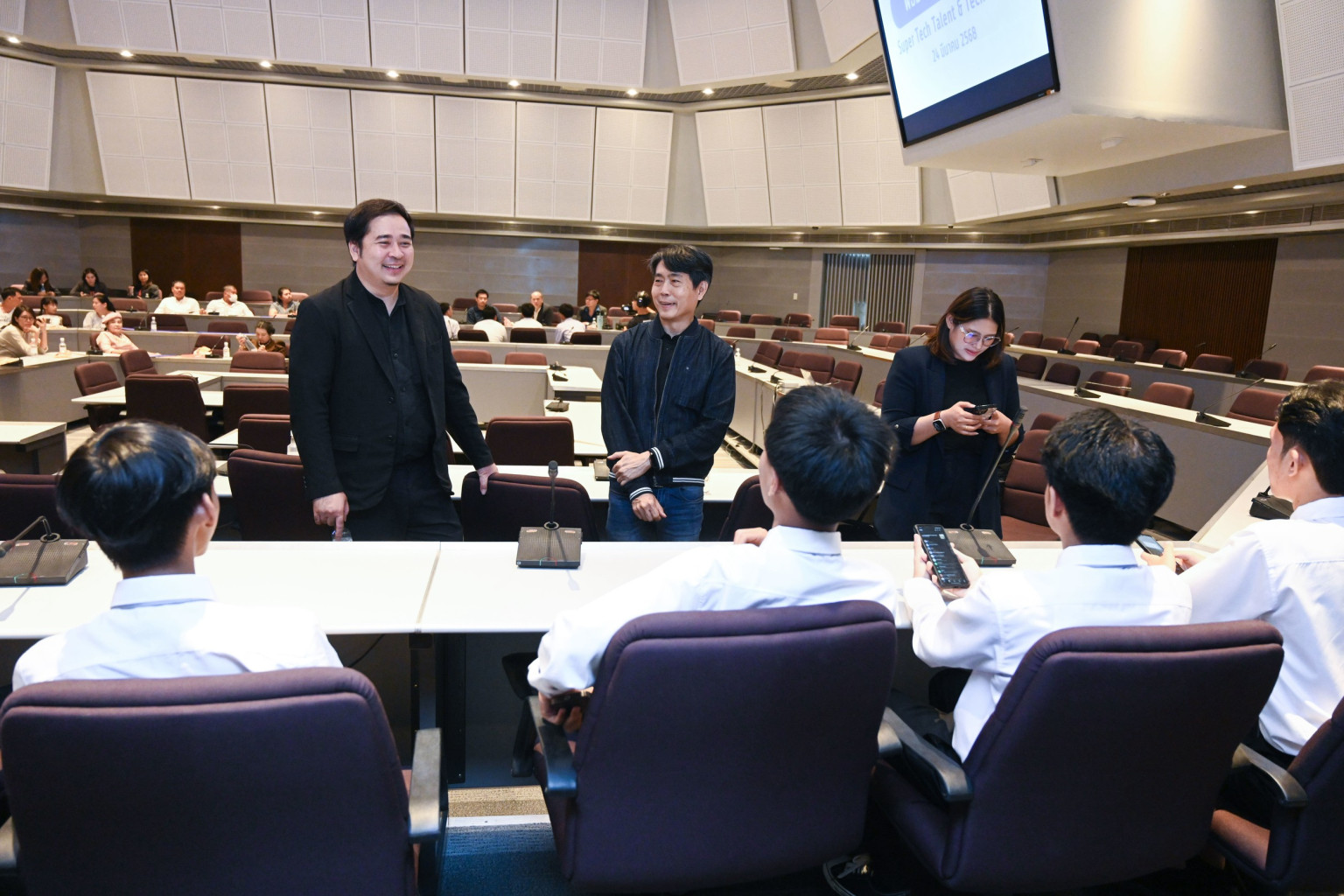 และเด็กๆ 2 ตัวแทนผู้ได้รับทุน Super Tech นายปณิธิพงศ์ ชูประเสริฐโชค (บุ๊ง) นักศึกษาคณะเทคโนโลยีสารสนเทศและนวัตกรรม สาขาวิชาวิทยาการคอมพิวเตอร์ มุ่งเน้นในด้านวิทยาการข้อมูลและความมั่นคงปลอดภัยไซเบอร์ กล่าวด้วยความภูมิใจว่า “ทุนที่ได้รับในครั้งนี้ไม่เพียงแค่เป็นการสนับสนุนทางการเงินสำหรับการศึกษาของผมเท่านั้น แต่ยังเป็นการสร้างโอกาสให้ผมสามารถมุ่งมั่นในการเรียนรู้และพัฒนาโดยไม่ต้องกังวลเกี่ยวกับค่าใช้จ่าย ผมสามารถใช้เวลาที่มีไปพัฒนาผลงานที่มีคุณค่าและต่อยอดในอนาคตได้อย่างเต็มที่ครับ” และผู้ได้รับทุน Tech Talent นายอธิปภูวัส เรืองสา (ลุฟ) นักศึกษาคณะวิศวกรรมศาสตร์ สาขาวิชาวิศวกรรมคอมพิวเตอร์และหุ่นยนต์ กล่าวว่า “การได้รับทุนในครั้งนี้เปิดโอกาสให้ผมได้เรียนรู้สิ่งใหม่ๆ และต่อยอดความรู้เพื่อพัฒนาผลงานในอนาคต โดยเฉพาะอย่างยิ่งที่มหาวิทยาลัยกรุงเทพ ซึ่งไม่เพียงแค่ให้ความรู้ในห้องเรียน แต่ยังส่งเสริมให้เรามีโอกาสแสดงความสามารถและความสนใจในด้านต่างๆ นอกห้องเรียนอย่างเต็มที่”