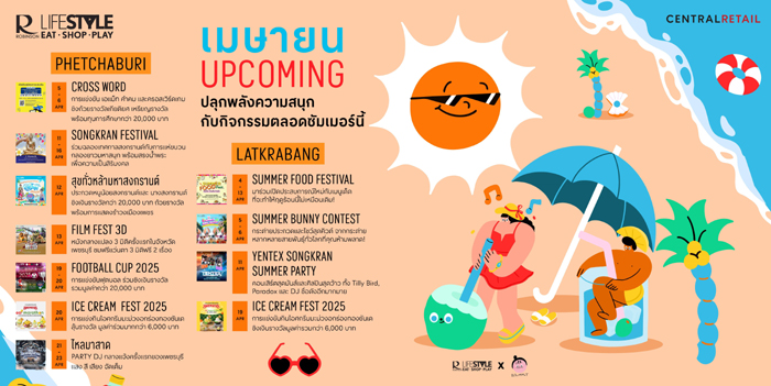 ศูนย์การค้าโรบินสันไลฟ์สไตล์ ในเครือเซ็นทรัล รีเทล ชวนคุณมาเฉลิมฉลองความสุขต้อนรับปีใหม่ไทยไปกับอิเวนต์สุดยิ่งใหญ่ตลอดเดือนเมษายนนี้ ที่จะเติมเต็มความสนุกให้ทุกคนในครอบครัวแบบจัดเต็ม! พบกับกิจกรรมไฮไลต์สงกรานต์มากมาย ทั้งปาร์ตี้คอนเสิร์ตสุดมันส์จากศิลปินดัง อุโมงค์น้ำมหาสนุก ขบวนแห่สงกรานต์สุดอลังการ การแข่งขันประกวดการแต่งกายในธีมซัมเมอร์ เทศกาลอาหารแสนอร่อย และกิจกรรมเสริมสิริมงคลต้อนรับปีใหม่ไทยพร้อมพบกับกิจกรรมสุดพิเศษที่โรบินสันไลฟ์สไตล์ทุกสาขา ทั้งการร่วมฉลองปีใหม่ไทยอย่างมีสีสัน! เพียงแต่งชุดไทยมาเดินช้อปที่ศูนย์การค้าโรบินสันไลฟ์สไตล์ทุกสาขา ระหว่างวันที่ 13เม.ย. 68-15 เม.ย. 68 รับฟรี! ไอศกรีมสุดอร่อย 1,000 ถ้วยต่อสาขาและ “โรบินสันไลฟ์สไตล์ ICE CREAM FEST 2025" โรบินสันไลฟ์สไตล์ ร่วมกับ สเวนเซ่นส์ เฟ้นหาสุดยอดนักกินไอศกรีม “มะม่วงอกร่องทองซันเด อร่อยตราตรึง” ในวันที่ 20 เม.ย. 68 ลุ้นชิงเงินรางวัลมูลค่ารวมกว่า 156,000 บาท (ทุกสาขาทั่วประเทศ ยกเว้นสาขานครศรีธรรมราช)