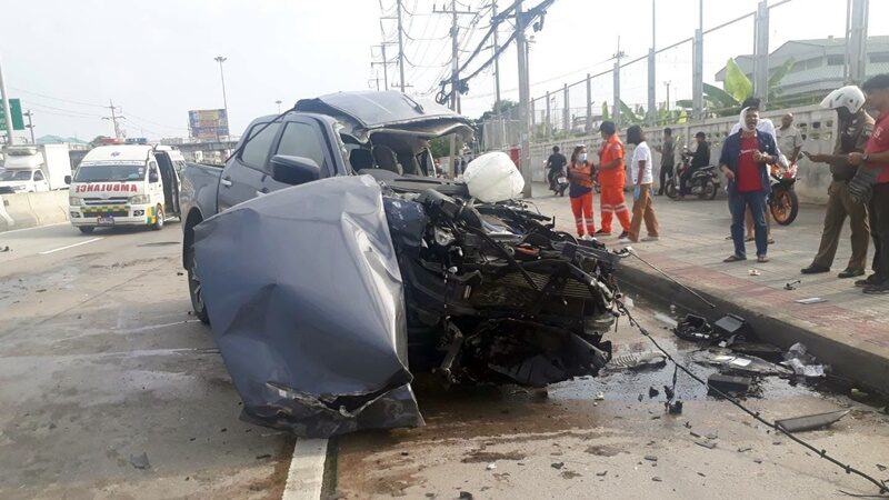 ชนกันยับเจ็บ 18 กระบะ 2 คันรถตู้โดยสารด้วย แนะเลี่ยงคู่ขนานหน้าโชว์รูมโตโยต้านวนคร