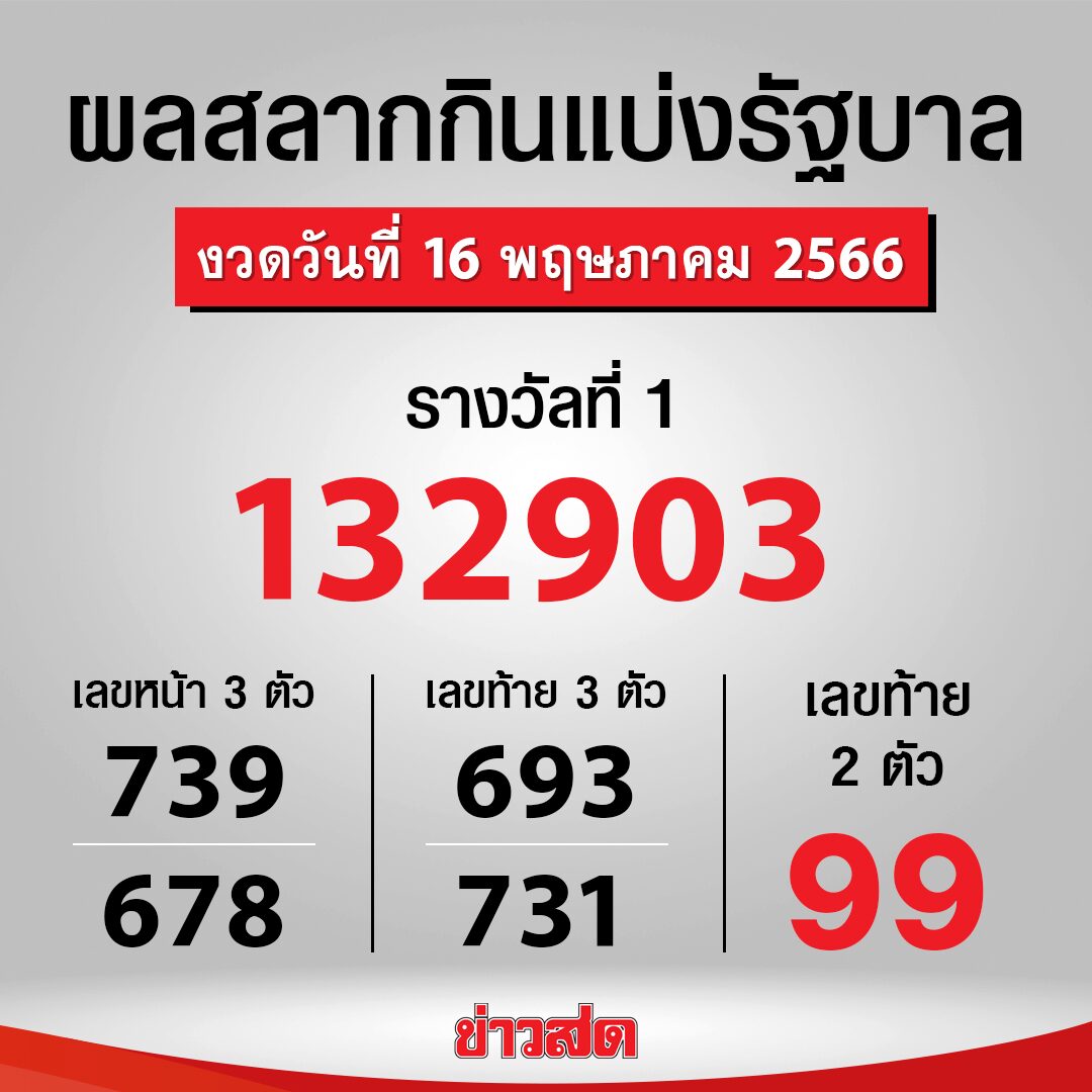 - ตรวจหวย ผลสลากกินแบ่งรัฐบาล งวดประจำวันที่ 16 ตุลาคม 2566