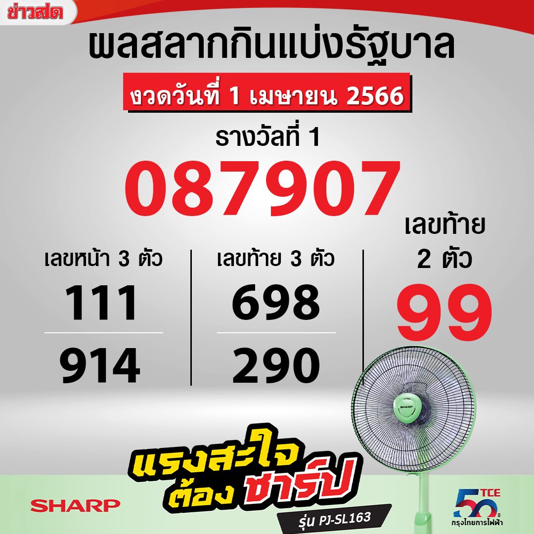 งวดวันที่ 1 เม.ย.2566 เลขที่ออกได้แก่ 99