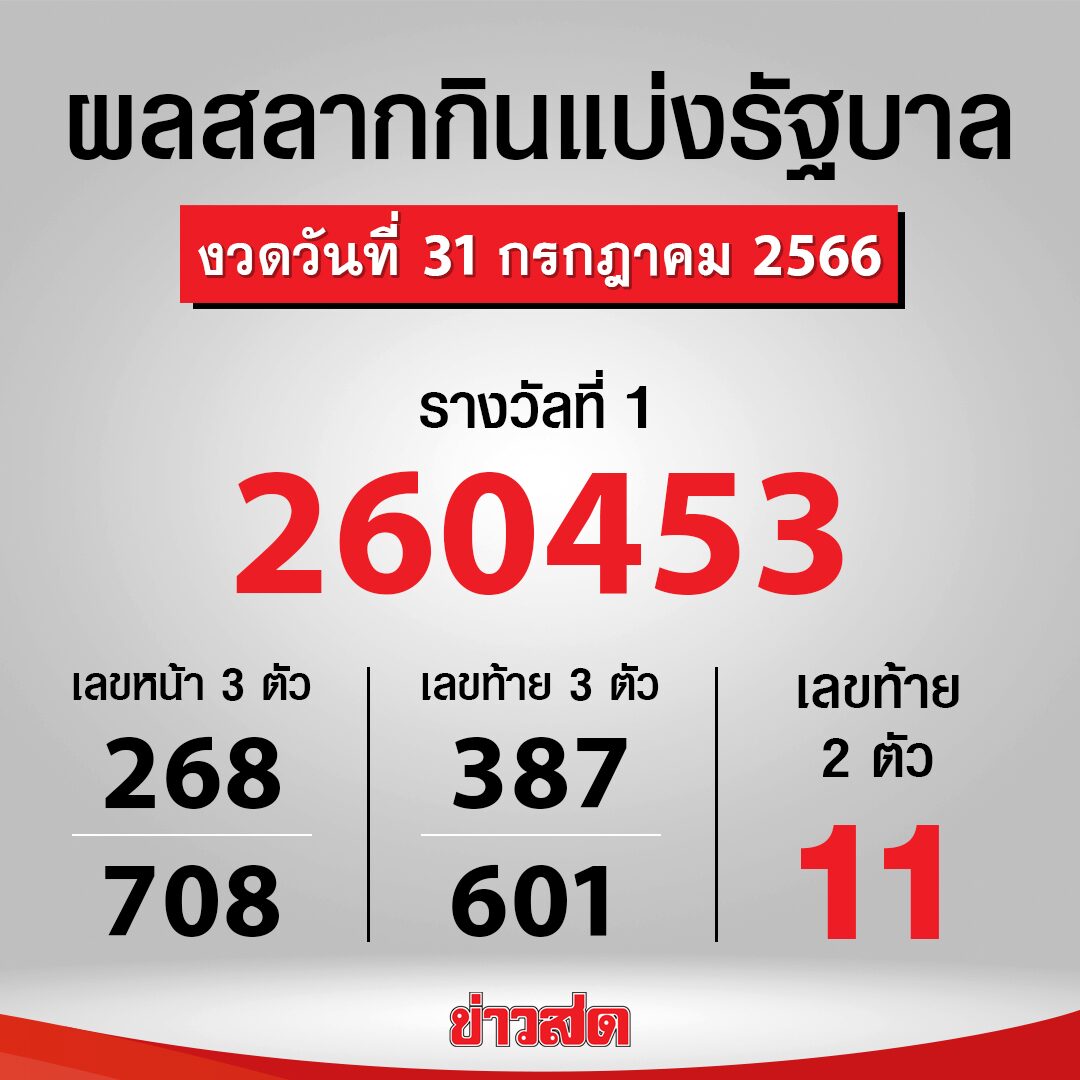 งวดวันที่ 31 ก.ค.2566 เลขที่ออกได้แก่ 11