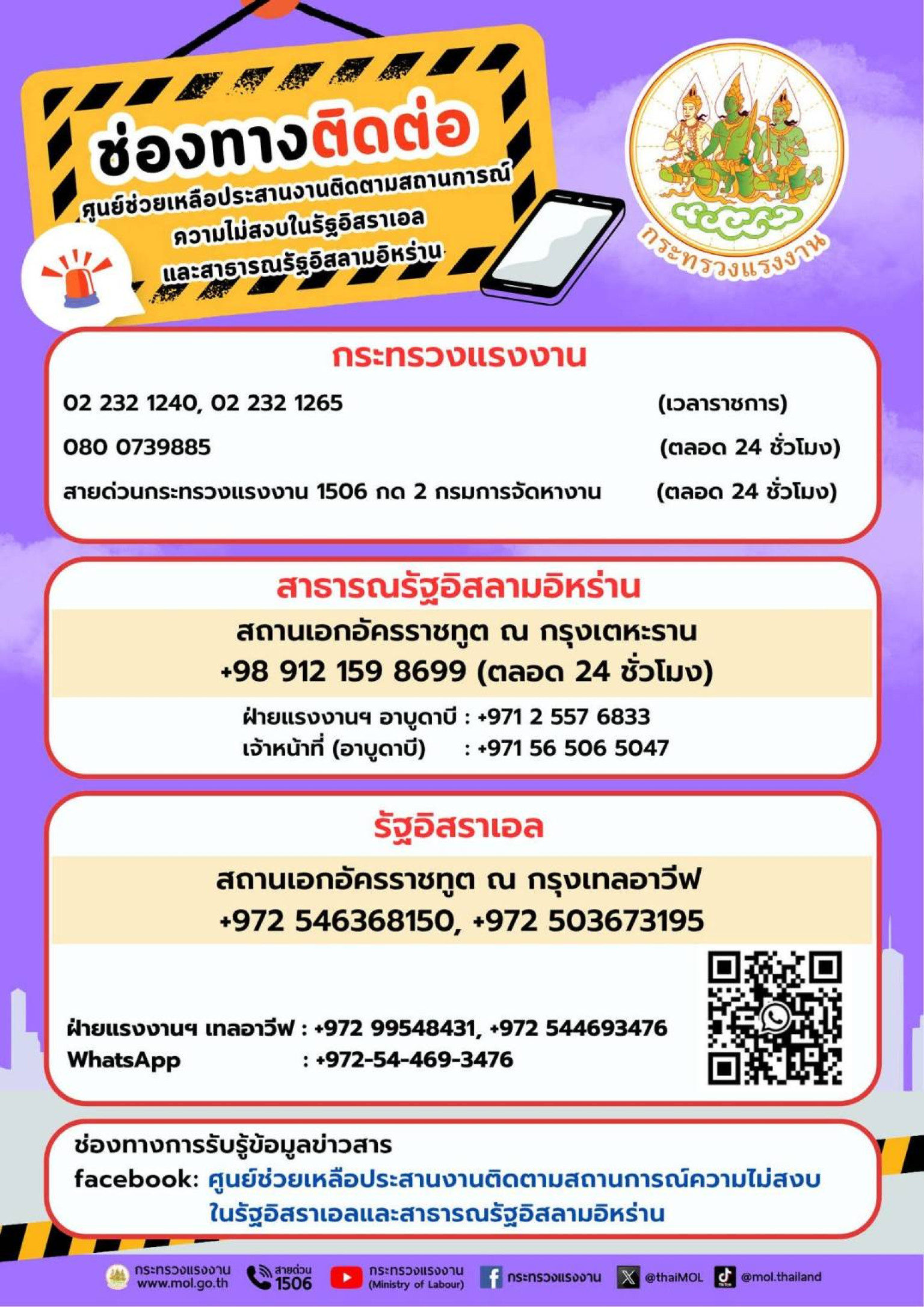 ก.แรงงาน เปิดศูนย์ช่วยเหลือแรงงานไทยในอิสราเอล–อิหร่าน “ปลัดฯบุญสงค์” ขอความร่วมมือแรงงานดาวน์โหลดแอป Smart TOEA และเปิดระบบติดตามตำแหน่ง