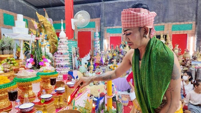 นายกฤษณะพงษ์ นาคจันทร์ อายุ 44 ปี หรือที่ทุกคนรู้จักในนาม "หมอเอ วังนาคินทร์" ร่างทรงปู่นาคราชเจ้าของสถานที่ กล่าวว่า วันนี้มีการประกอบพิธีบวงสรวงองค์พญานาคราช พ่อปู่ศรีสุทโธ แม่ย่าศรีปทุมมา เพื่อส่งญาณบารมีของทุกพระองค์เข้าสู่การจำศีลช่วงเข้าพรรษา 3 เดือน